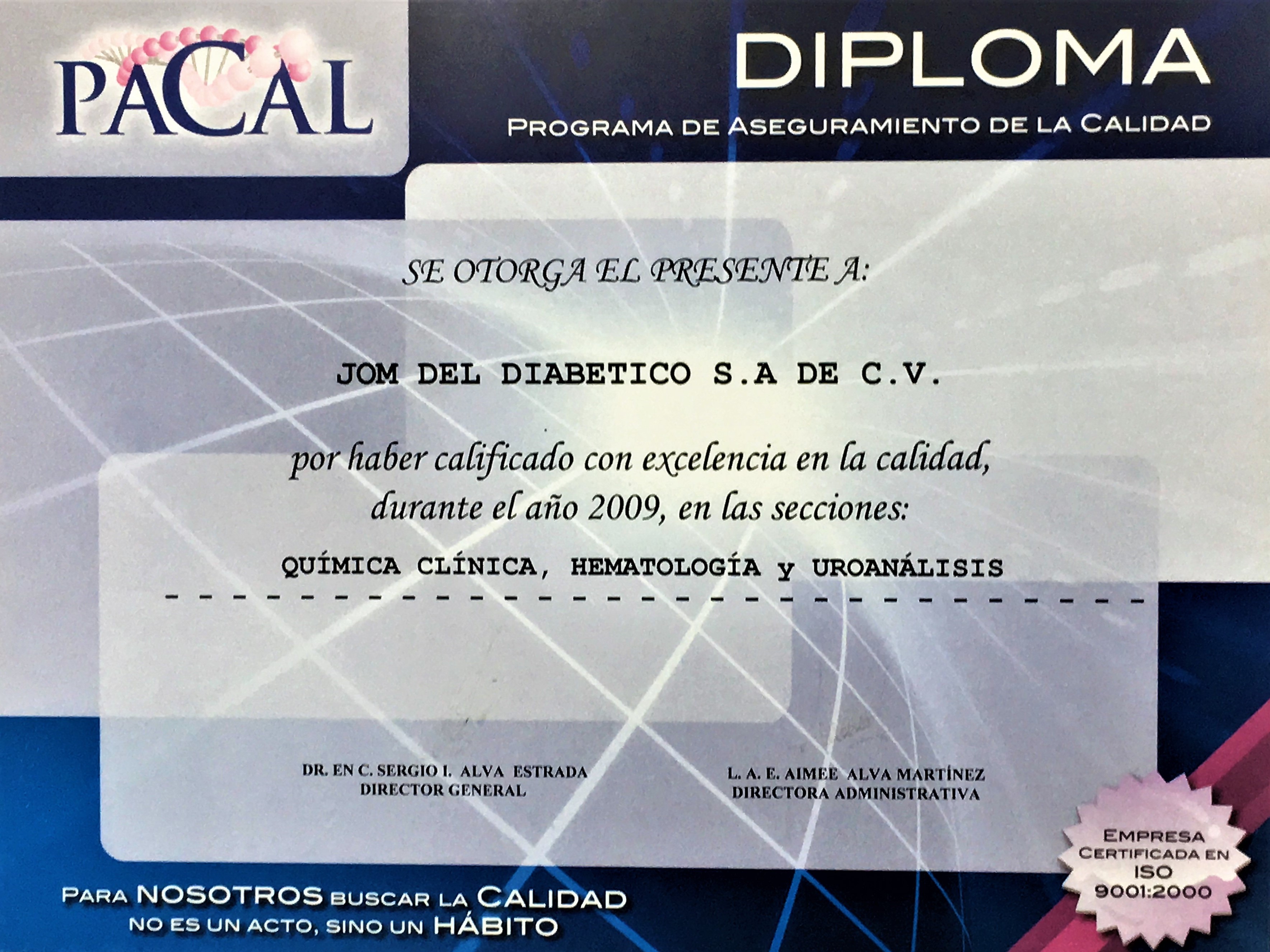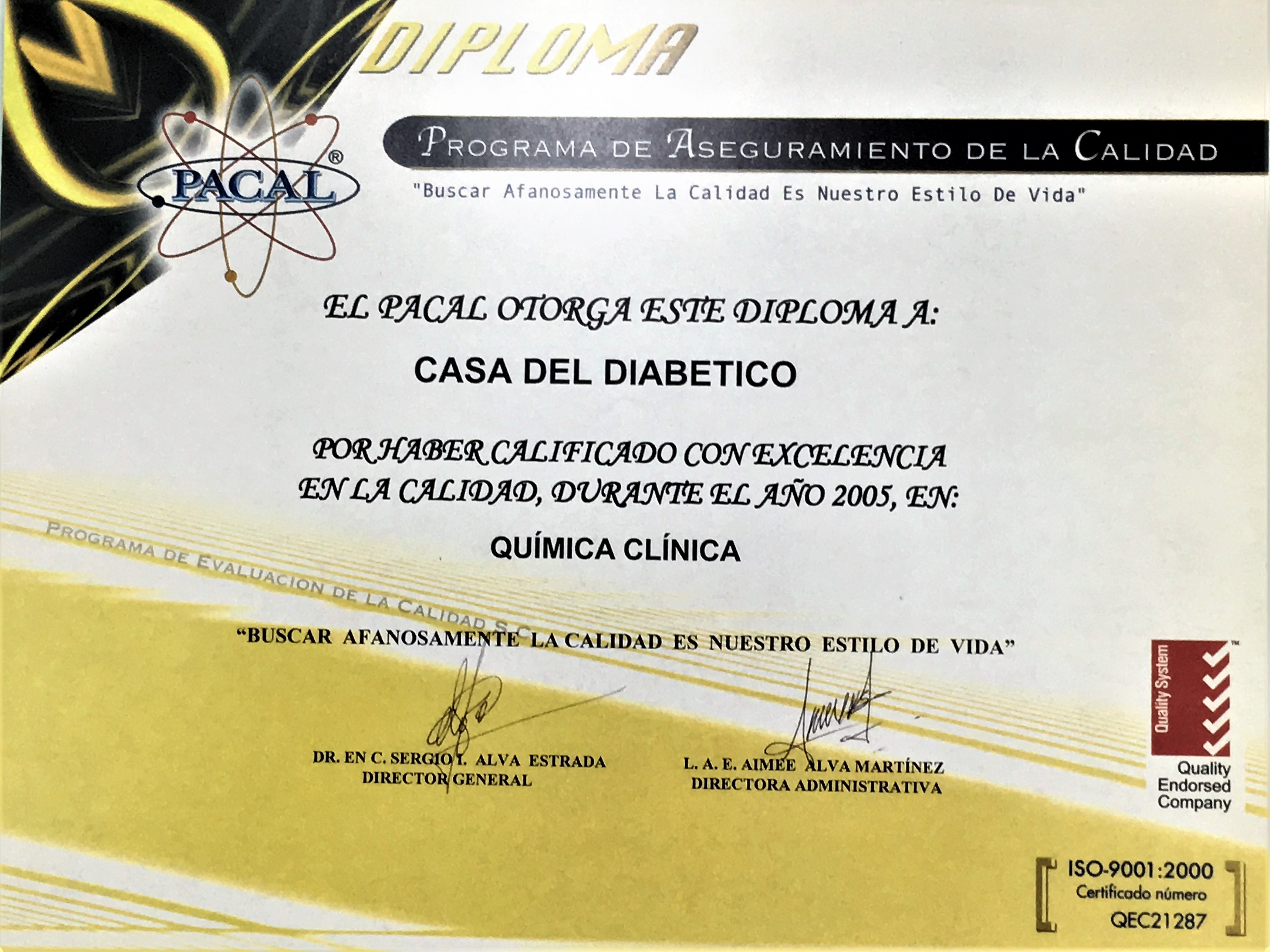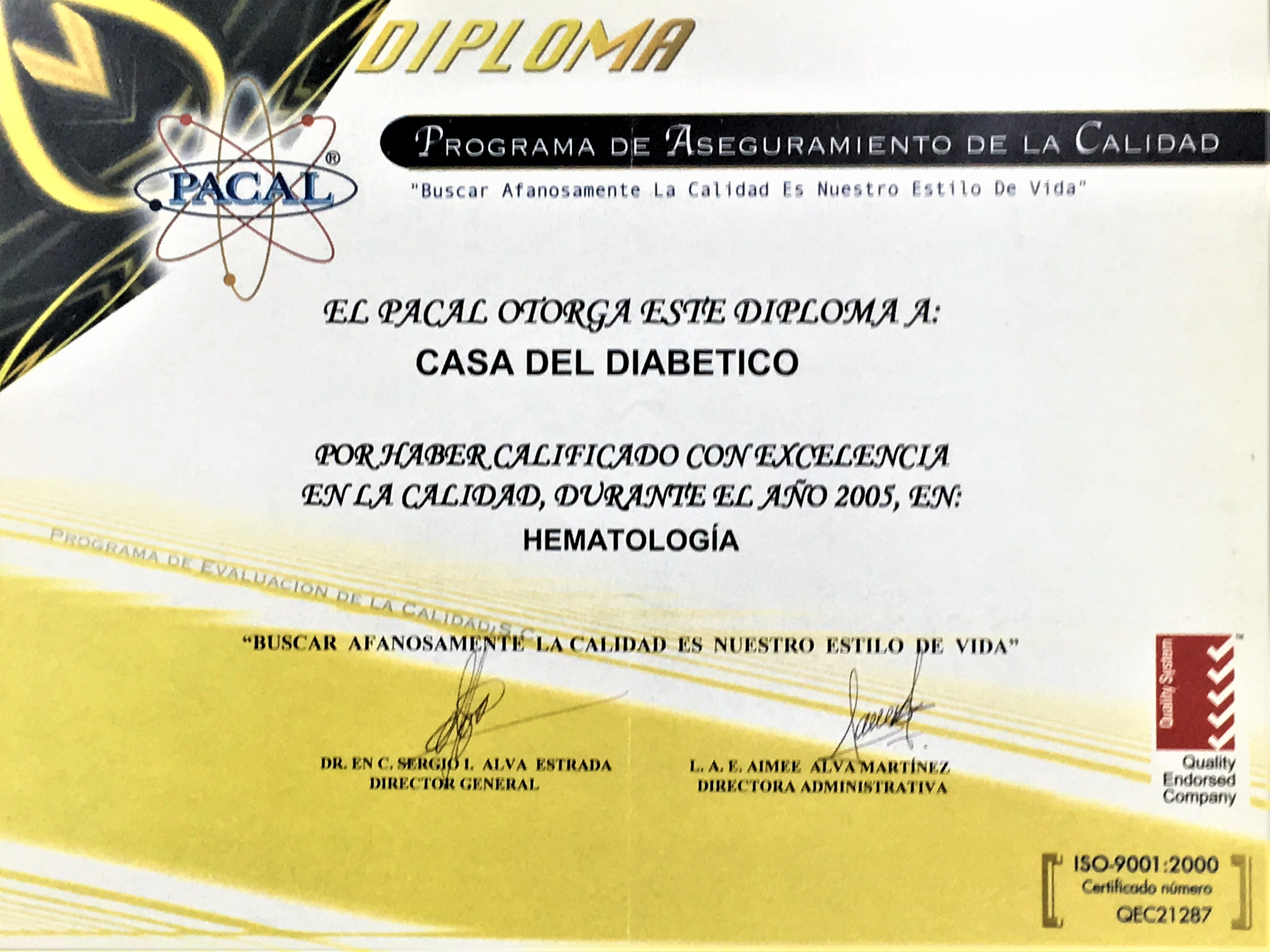 Somos parte del “Programa de Control de Calidad (PACAL) garantizando confiabilidad en nuestros resultados y un servicio de alta calidad con atención personalizada y humanizada. En el año 2005 obtuvimos el primer lugar en Química Clínica y en el 2006 de excelencia en Hematología. Trabajamos con todos los lineamientos y “Normas de Laboratorio y Sistema de Gestión de la Calidad “, vigente con una certificación ISO:9001:2015 y la Acreditación.